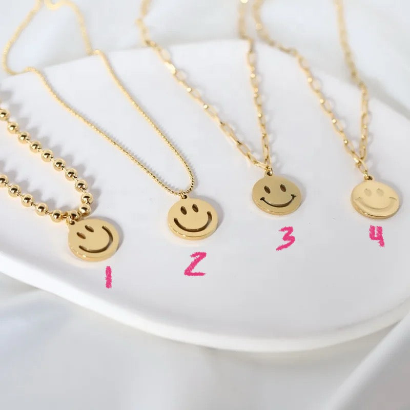 Smiling Face Cooper Bead Pendant Necklace Adjustable / Stainless Steel