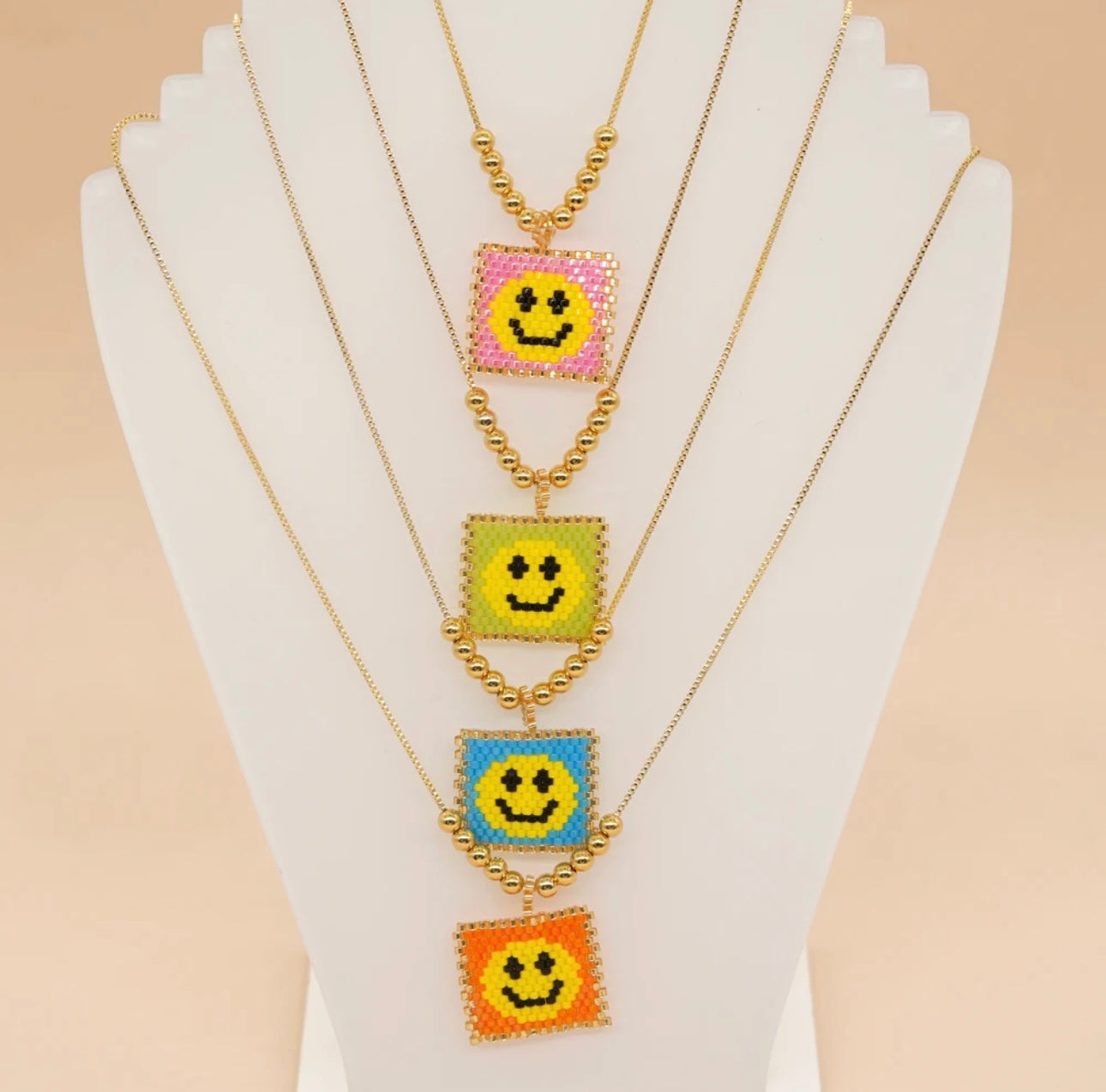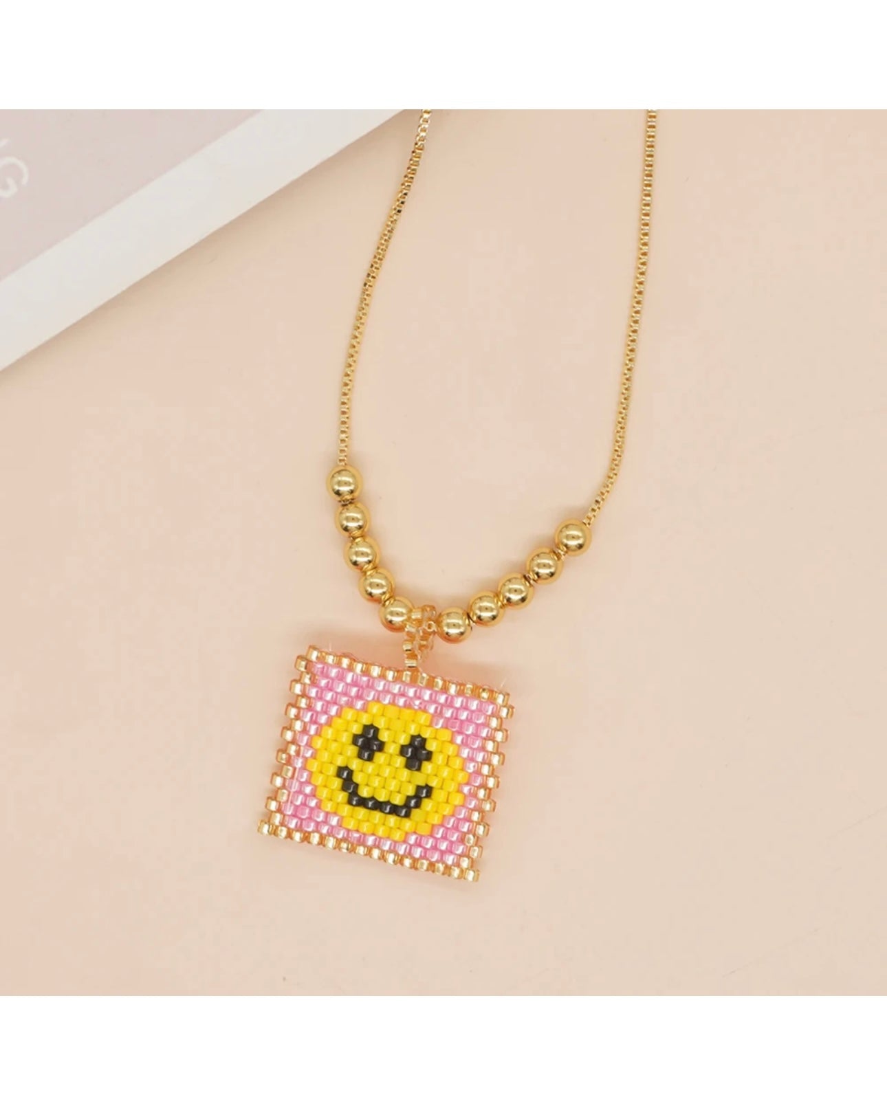 Smiling Face Copper Bead Pendent Necklace Adjustable / Stainless Steel Chain / Miyuki Beads Necklace